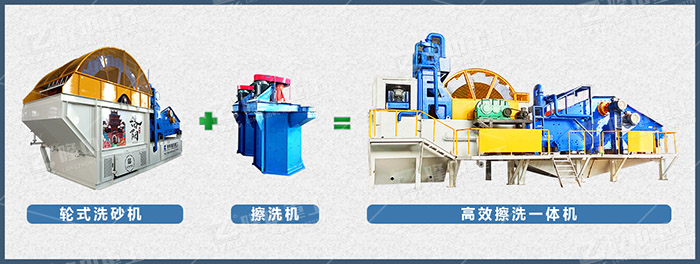 將傳統(tǒng)擦洗機與輪式洗砂機相結(jié)合,能夠使物料與物料充分摩擦去除表面附著物,同時采用高速旋轉(zhuǎn)的攪拌軸,使清洗效果顯著提高