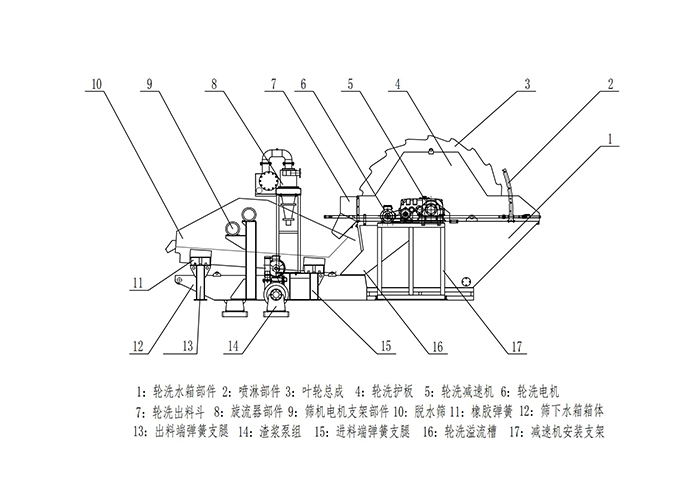 洗砂水混合物進入清洗箱,由葉輪分離機進行清洗、砂泥分離后,砂石物料進入下層脫水篩脫水,而流溢出的廢水經(jīng)真空高壓泵輸送到高壓分離器中,經(jīng)離心分級濃縮后的細(xì)砂,通過沉砂嘴排入脫水篩上層進行脫水。